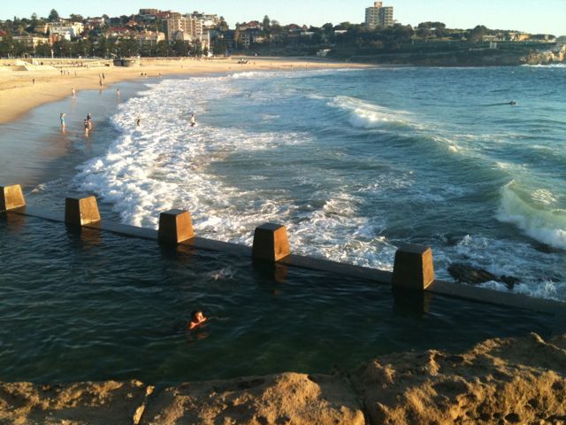 7am at Coogee beach for a ‘fun’ workout! A summary of ‘petes’ session! Run the bay north, Swim the bay south back, run to Clovelly, swim the bay up, run up the beach touch the wall, run back, swim the bay, run back to Coogee, fast, swim the bay to the south & you all finished! Phew!